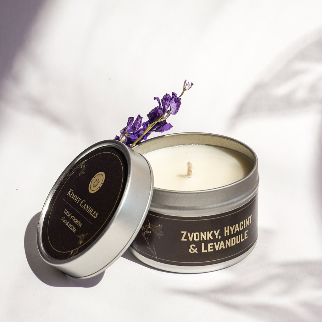 Malá sójová svíčka Zvonky, Hyacint & Levandule